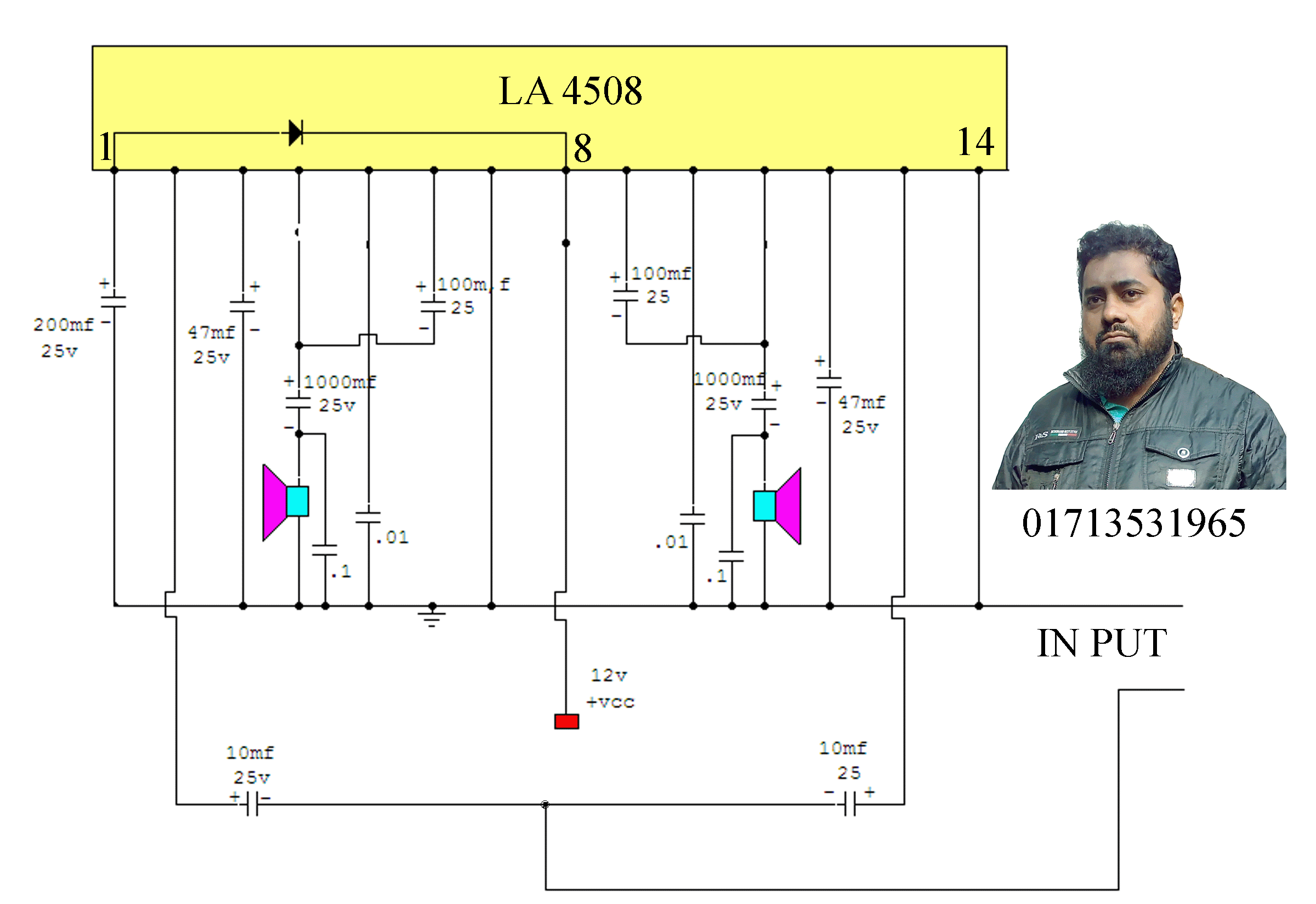 - LA4808 আইসি দিয়ে ডায়গ্রাম দেখে নিজেই একটি এম্পলীফায়ার তৈয়ার করুন । এই এম্পলীফায়ার সারকিটটি মোবাইল দিয়েও বাজাতে পার বেন 40w আউট পুট পাবেন।